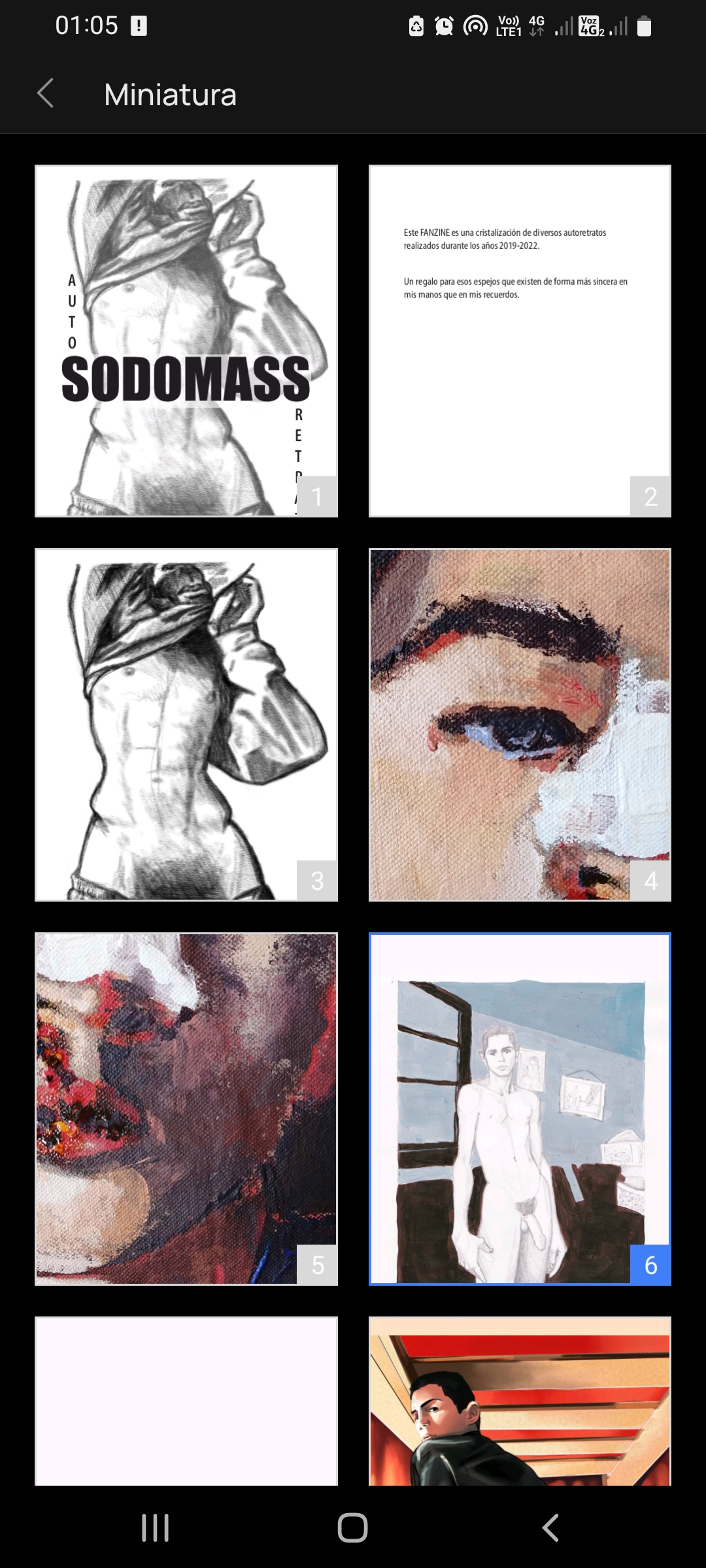 It has a total of 14 pages, with 8 self-portraits in different techniques and 3 short texts. It is my first approach to something of this format and for now it is only available in its PDF version.